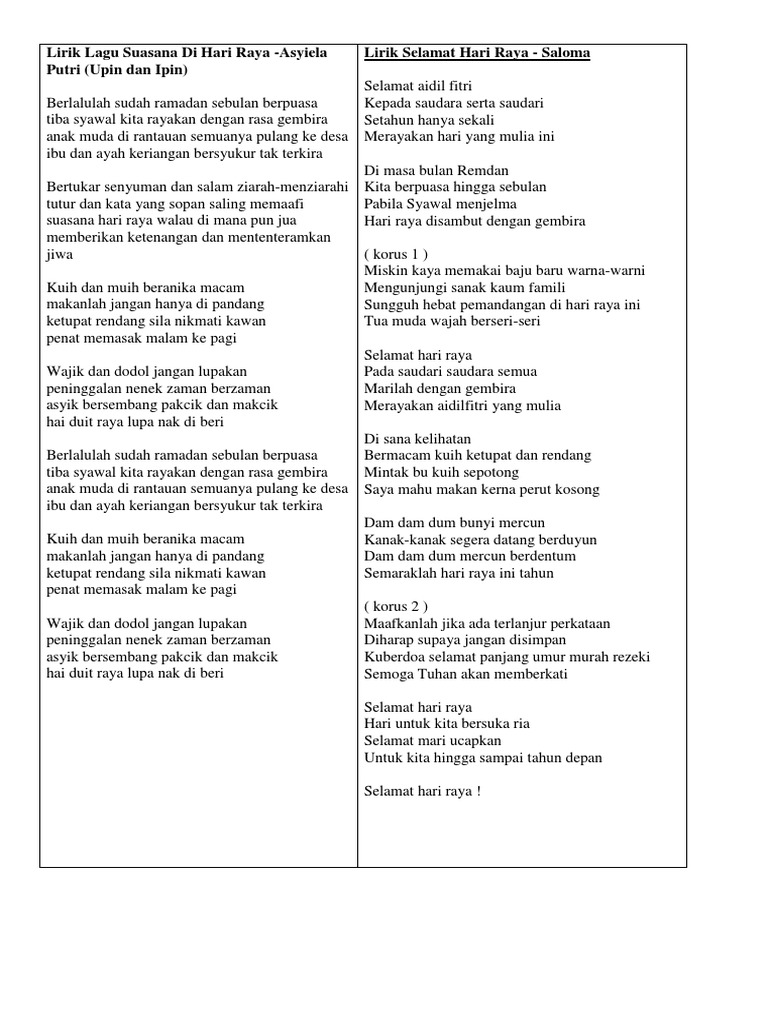 Lirik Lagu Suasana Di Hari Raya Upin Ipin Pdf